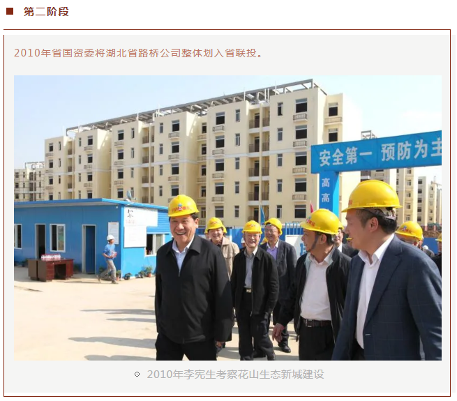 2010年,省政府将省路桥并入了联投集团,企业得到勃发生机。在联投集团这条大船上,省路桥的发展势如破竹,企业的注册资本金,从当初的1.06亿元到3亿元,再到如今的20亿元。从一级资质,增加到市政一级资质,再到总承包特级资质。利用集团1+8城市圈的建设机会,成为花山、梧桐湖、梓山湖三个生态新城的总承包人。营业收入从几亿元迅速增加到20亿元。省路桥集团在新的联投集团党委的指导关怀下,已经进入了全国省级路桥的第一方阵,成为联投建设的主力军。