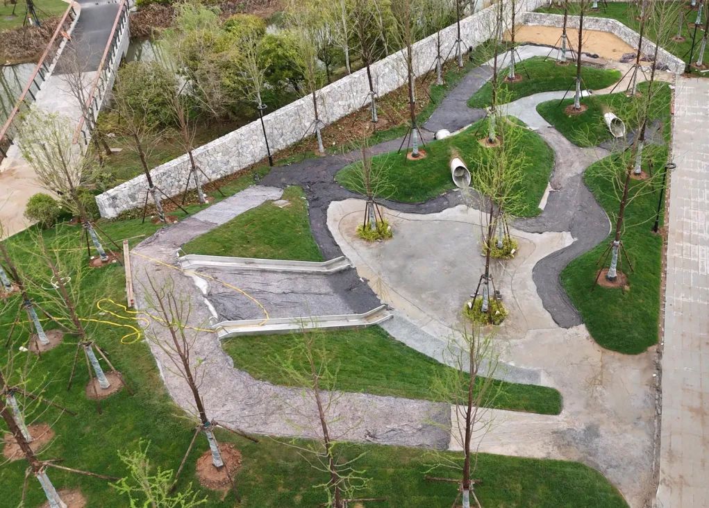 景观园路铺装工作总工程量为2500㎡,目前完成率达到97%。