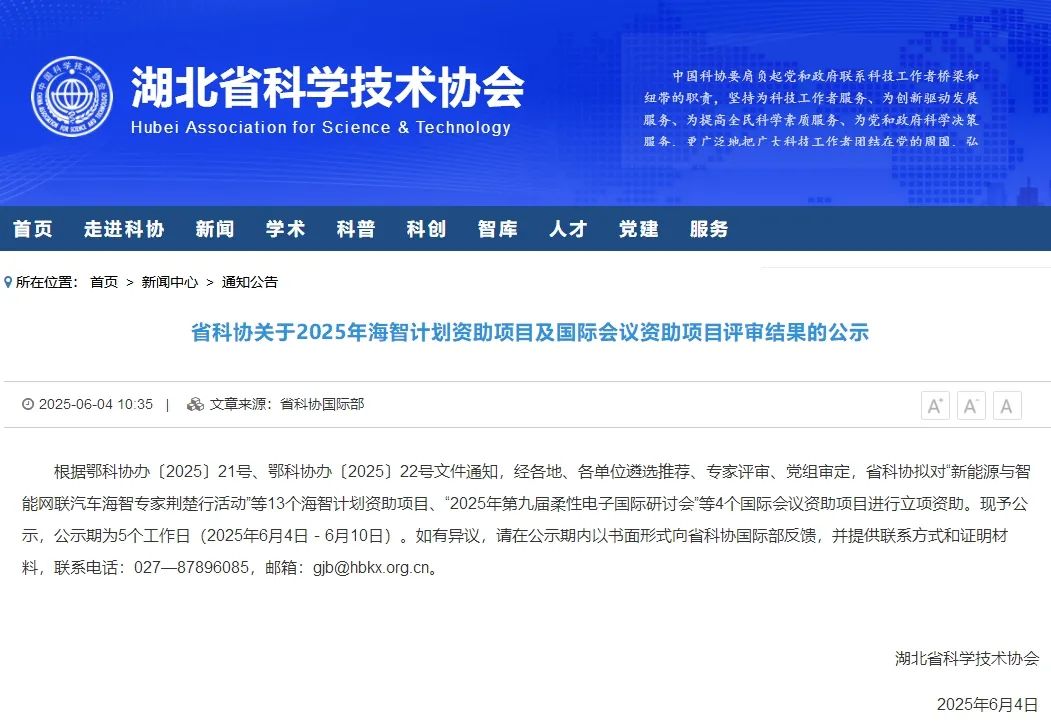 近日,湖北省科学技术协会正式公示2025年度海智计划资助项目名单。由中比科技园—国家(武汉)海外人才离岸创新创业基地欧洲(比利时)分中心申报的 “长江中游城市群(武汉)国际科技合作与技术转移活动”项目,经严格的遴选推荐和专家评审,成功获得立项资助。