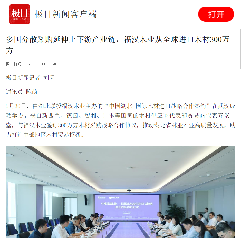 本次活动特别邀请国际木材行业头部企业参加。其中,Fortuna Forest Products Limited是新西兰辐射松原木的主要出口商之一,年对华出口量约300万-400万立方米(占新西兰对华出口总量的20%-25%)。DNF PACIFIC GROUP是智利主要的木材贸易公司之一,近年来通过集装箱向亚洲市场大量运输木材。日本住友已有300余年历史,旗下住友林业集团布局全球林业资源,年对华出口量约100万-150万立方米。近年来,中国市场的稳定需求和巨大潜力是国际木材供应商战略布局的重要考量因素,福汉木业以链式思维推动产业焕新发展,凭借完善的供应链体系和成熟的销售网络,积极落实湖北省内外贸政策,力争打造合作开放“湖北样板”。