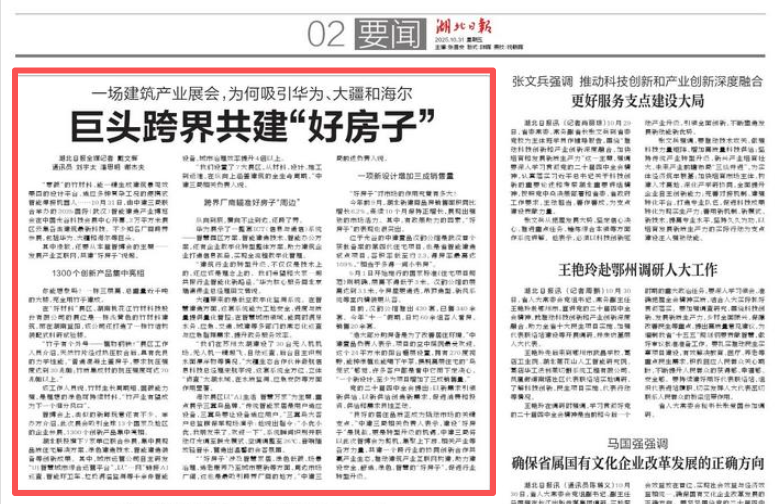 湖北日报:一场建筑产业展会,为何吸引华为、大疆和海尔巨头跨界共建“好房子”