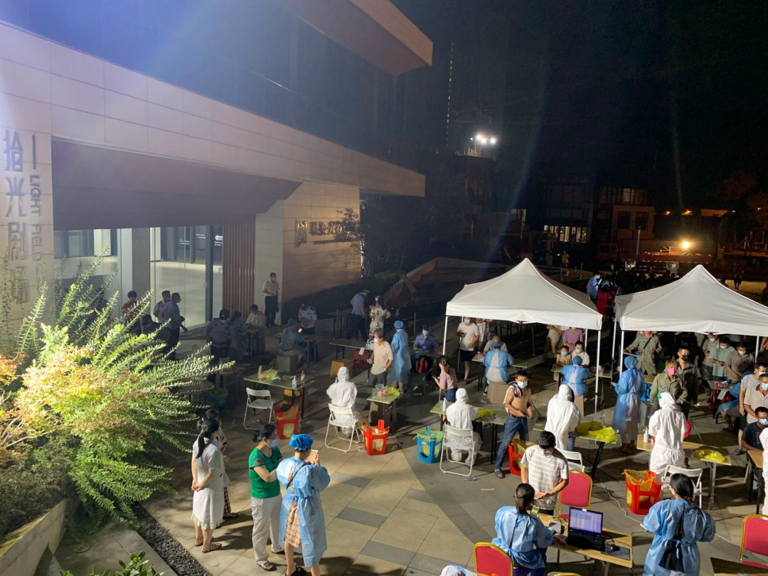 8月3日上午,武汉市政府通知开展全员核酸检测,联投置业高度重视,迅速响应,主动提供联投瑞园“拾光剧场”作为花山片区在建工地人员核酸检测点,全力配合社区做好核酸检测场地提供及检测准备工作。联投置业组织项目公司、营销、物业成立工作专班,积极研讨制定核酸检测点筹备方案,从接待安排、消杀工序、分流线路、环境维护、现场秩序等方面进行一一部署,全力以赴为现场防疫提供一切条件,最终提前一个小时高质效完成准备工作。截至目前,联投瑞园“拾光剧场”已完成3220组人员核酸检测,未来两天将于每日18时-24时持续进行相关工作,完成花山片区在建工地全员核酸检测,预计届时将完成22000组人员检测。