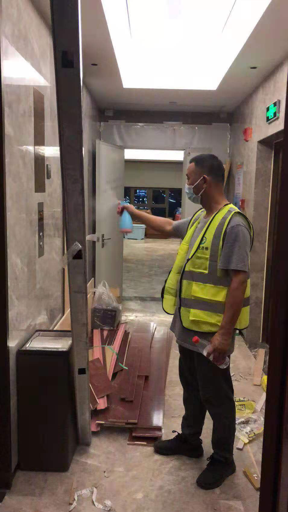 8月4日,抗疫突击队片刻不松懈,又立即奔赴经开区映泉酒店进行隔离通道搭设。8月4日凌晨,入店通道、三区通道建设完成,酒店楼梯、消防通道门全部封锁完毕。